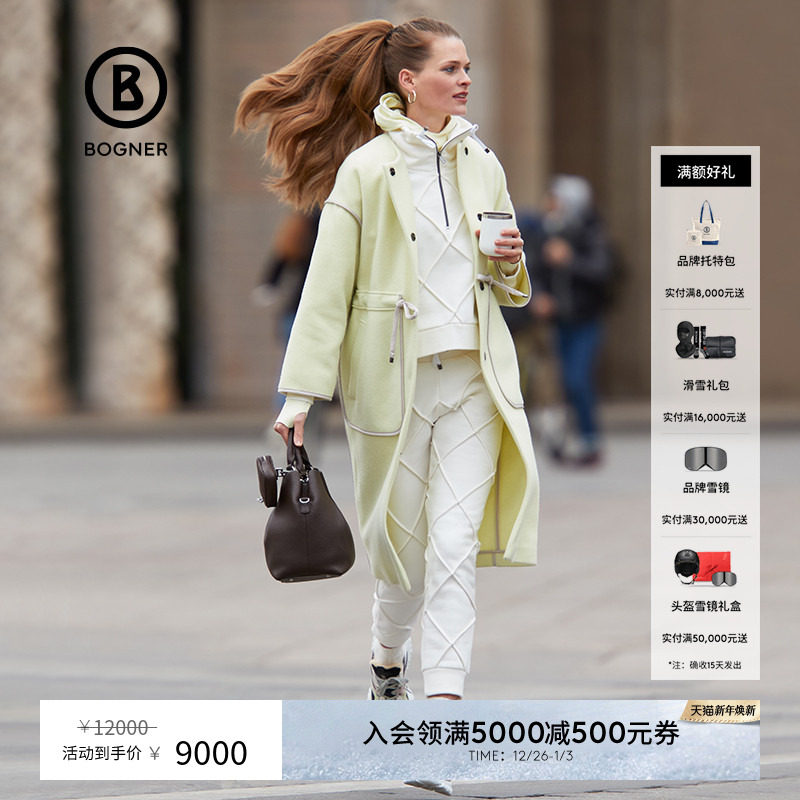 BOGNER博格纳 经典秋冬女士DASCHA羊毛混纺落肩可收腰长款大衣