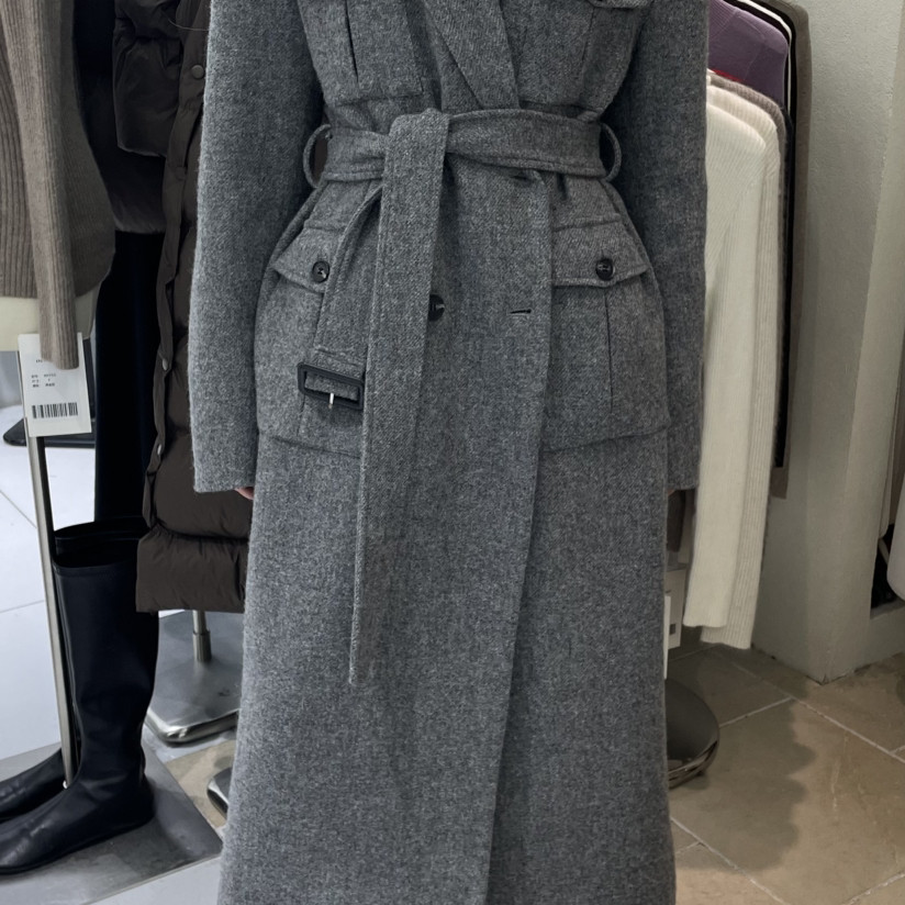 Long coat jacket欧美女舒适休闲双排扣大衣修身收腰长款大衣外套