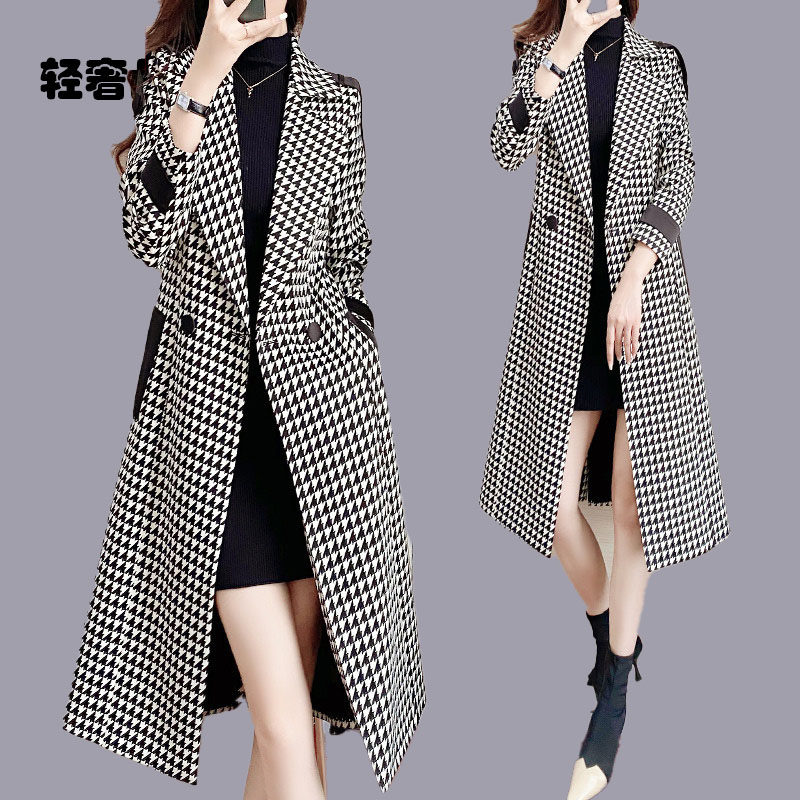 贰羊设计【格叙】高级感双排扣西装毛呢外套女秋冬季收腰长款大衣