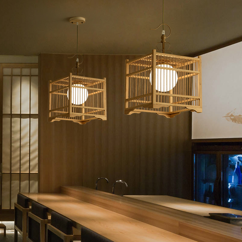 竹编鸟笼灯创意餐厅灯茶楼民宿日式灯具个性简约中式禅意竹子吊灯
