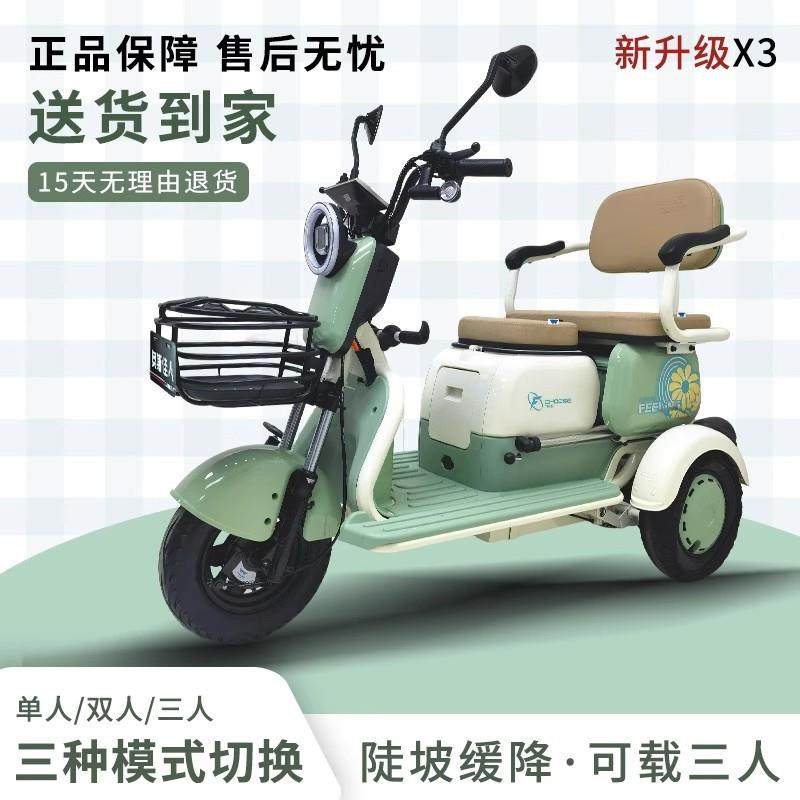 新款电动三轮车家用轻便小型老年人代步车亲子女士接送孩子电瓶车