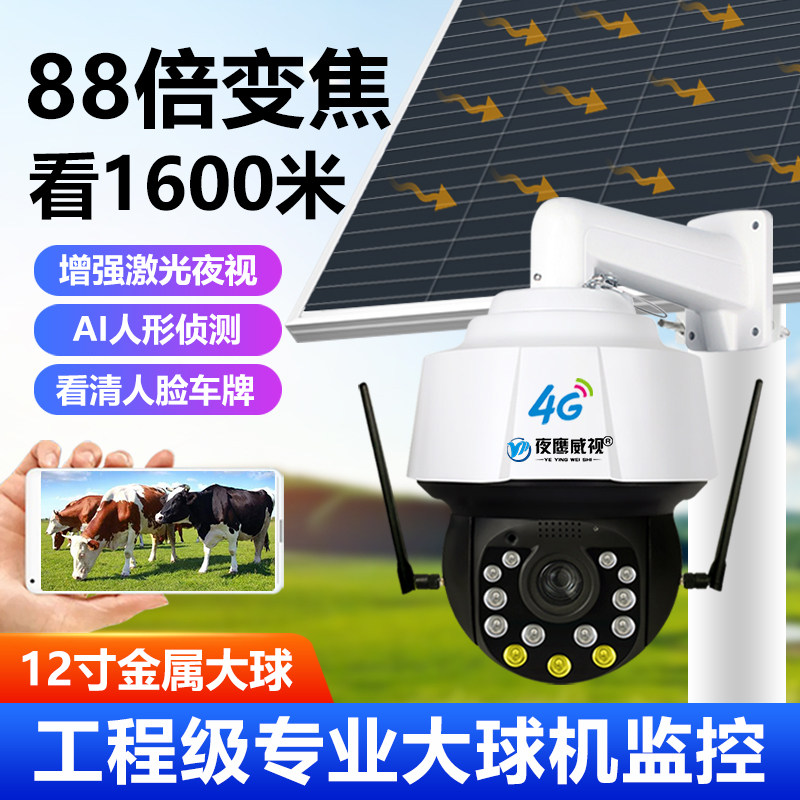 4G太阳能摄像头户外鱼塘大球机wifi手机远程巡航光学变焦监控无网
