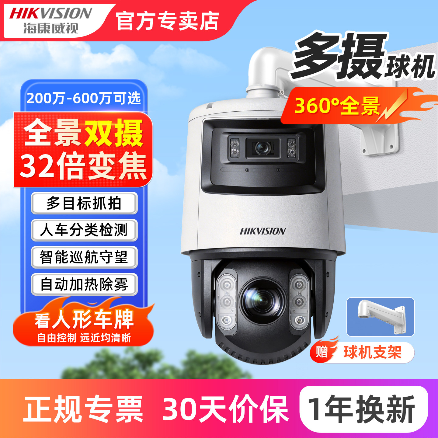 海康威视双摄全景大球机全彩室外云台摄影头高速球形监控器摄像机