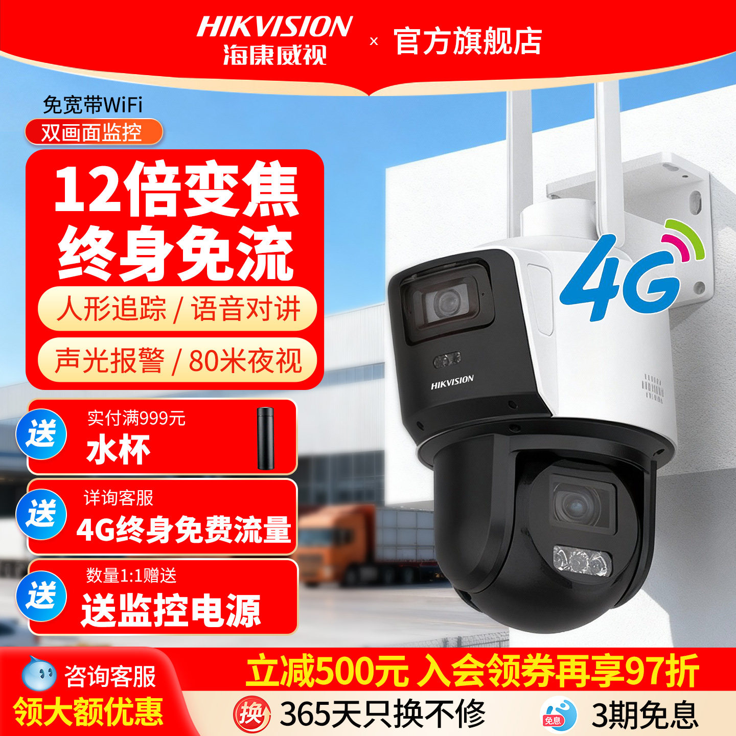 海康威视4G大球机监控器360度无死角全景摄影头免充值室外云台