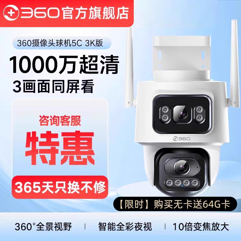 360摄像头户外球机5C 3K双500万超清镜头监控高清夜视全景防水