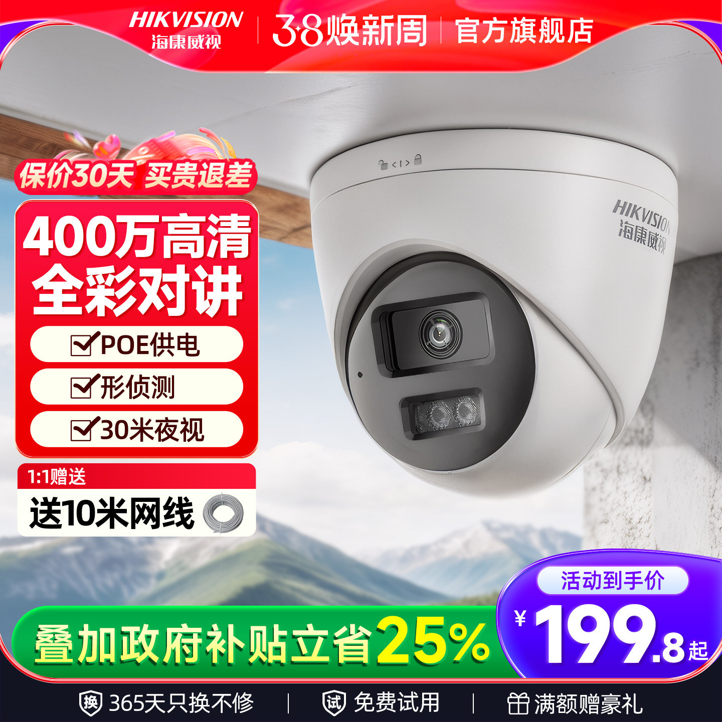 海康威视监控摄像头400万600万全彩夜视POE半球家用手机远程摄影
