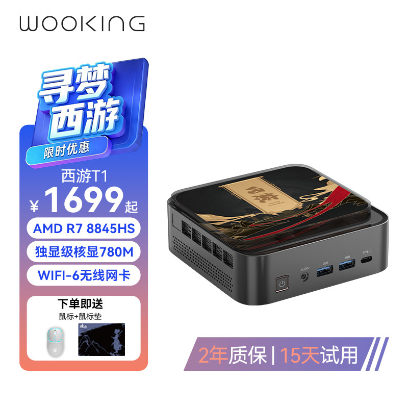 吾空锐龙7-8845HS迷你主机minipc台式电脑低功耗办公小主机双2.5G网口全功能C口便携电脑独立