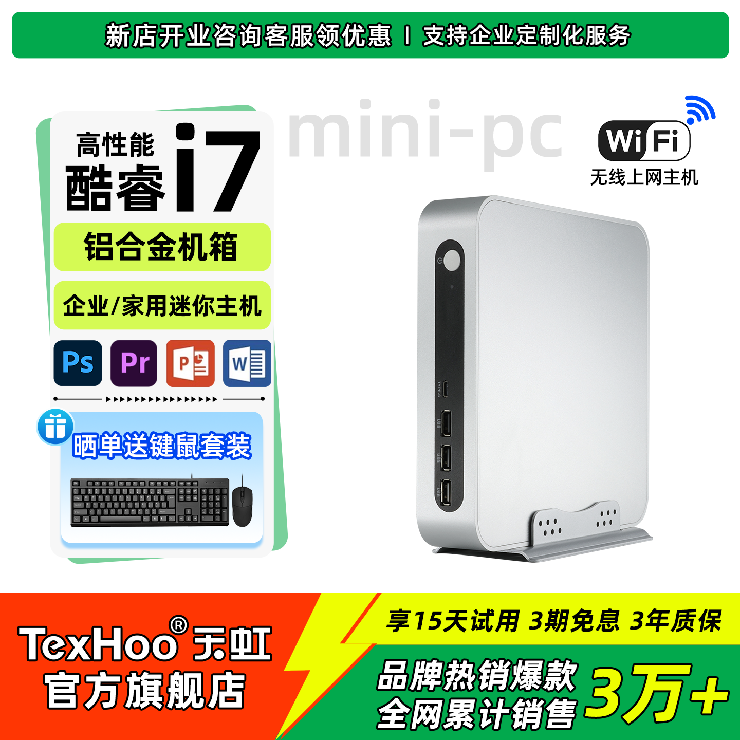 「天虹旗舰店」酷睿i7迷你主机商用办公主机高配家用游戏台式主机便携微型电脑低功耗桌面小机箱主机mini pc