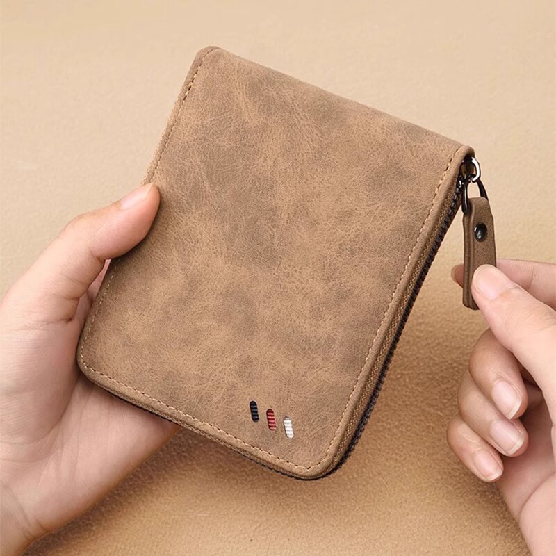 2026新款拉链钱包男款复古高级感零钱包大容量多卡位收纳证件卡包