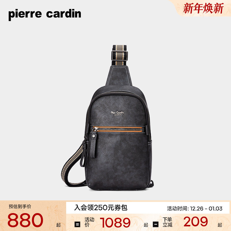 【真皮】皮尔卡丹男士胸包商务简约男式胸前包时尚牛皮单肩斜挎包