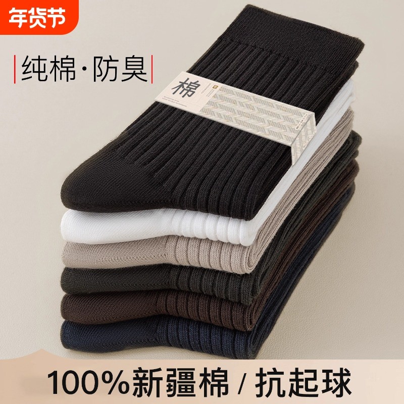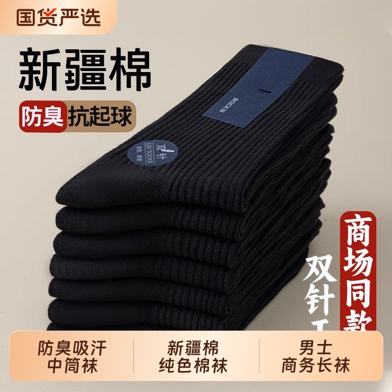 诸暨袜子男秋冬季防臭吸汗中筒袜运动潮流纯色棉袜男士新疆棉长袜