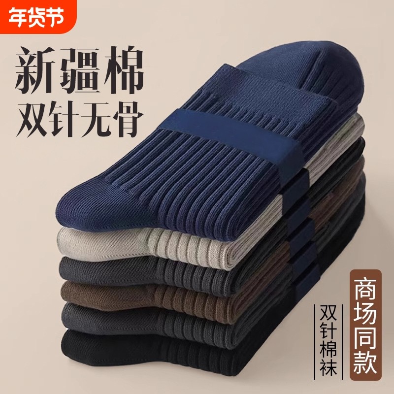 袜子男春秋款纯棉纱线中筒袜7A抗菌防臭新疆棉短筒袜男士棉袜男袜