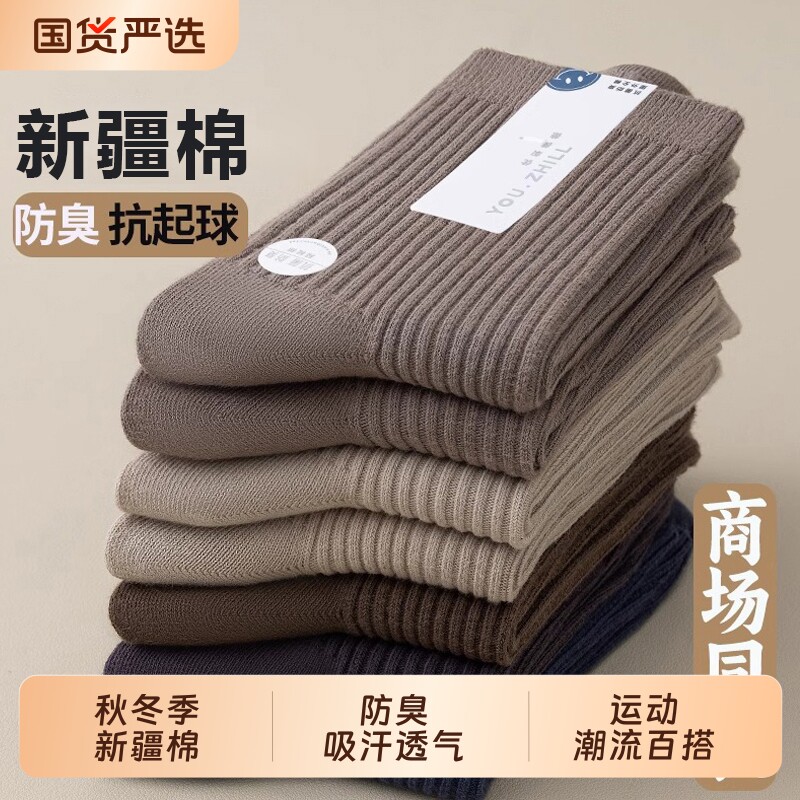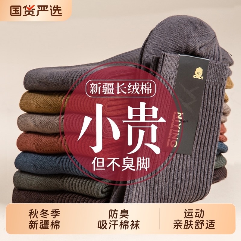 诸暨袜子男款纯棉中筒袜秋冬季运动防臭吸汗新疆棉袜男士商务长袜