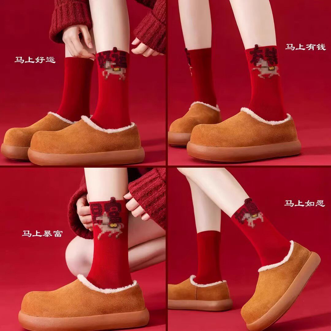 马年本命年男士红袜子棉袜女士大红色中筒袜礼盒秋冬情侣短袜礼物