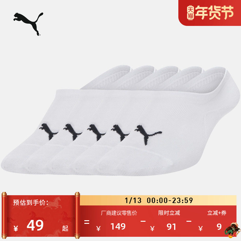 吸汗透气5双船袜棉袜男女PUMA彪马官方篮球跑步休闲运动袜907914