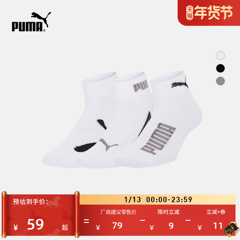 吸汗透气3双短袜棉袜男女PUMA彪马官方篮球跑步训练运动袜907881