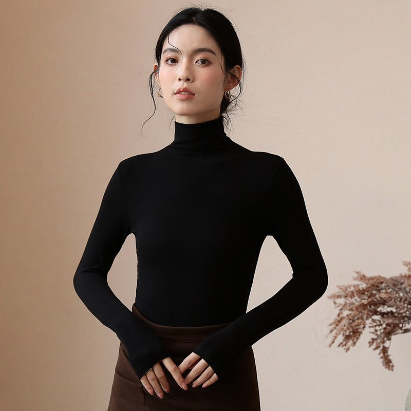 黑色高领打底衫女薄绒长袖内搭修身秋冬堆堆领打底衣磨毛上衣多色