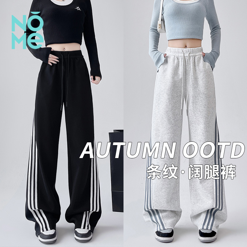 NOME(服饰)美式斜三杠运动裤女高腰直筒阔腿裤休闲宽松垂感卫裤