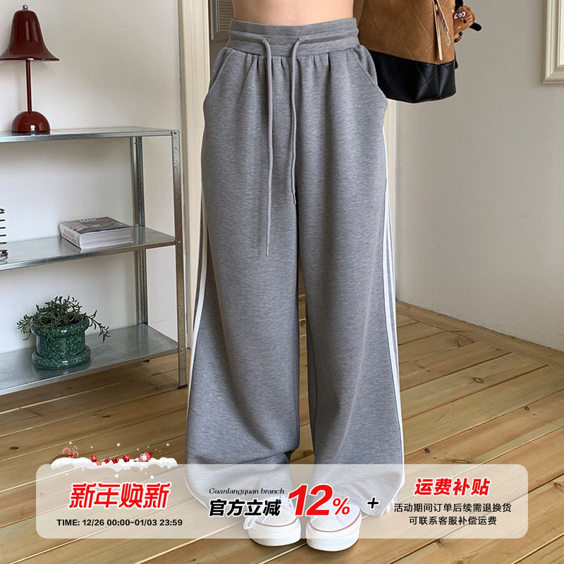 【5折款】橘子树在哪儿复古三杠休闲裤女秋运动垂感阔腿抽绳裤子