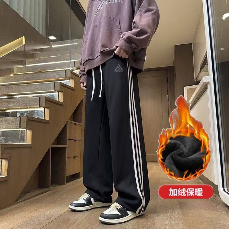 秋冬三杠运动裤男直筒宽松棉料春秋加厚透气休闲束脚长裤百搭裤子