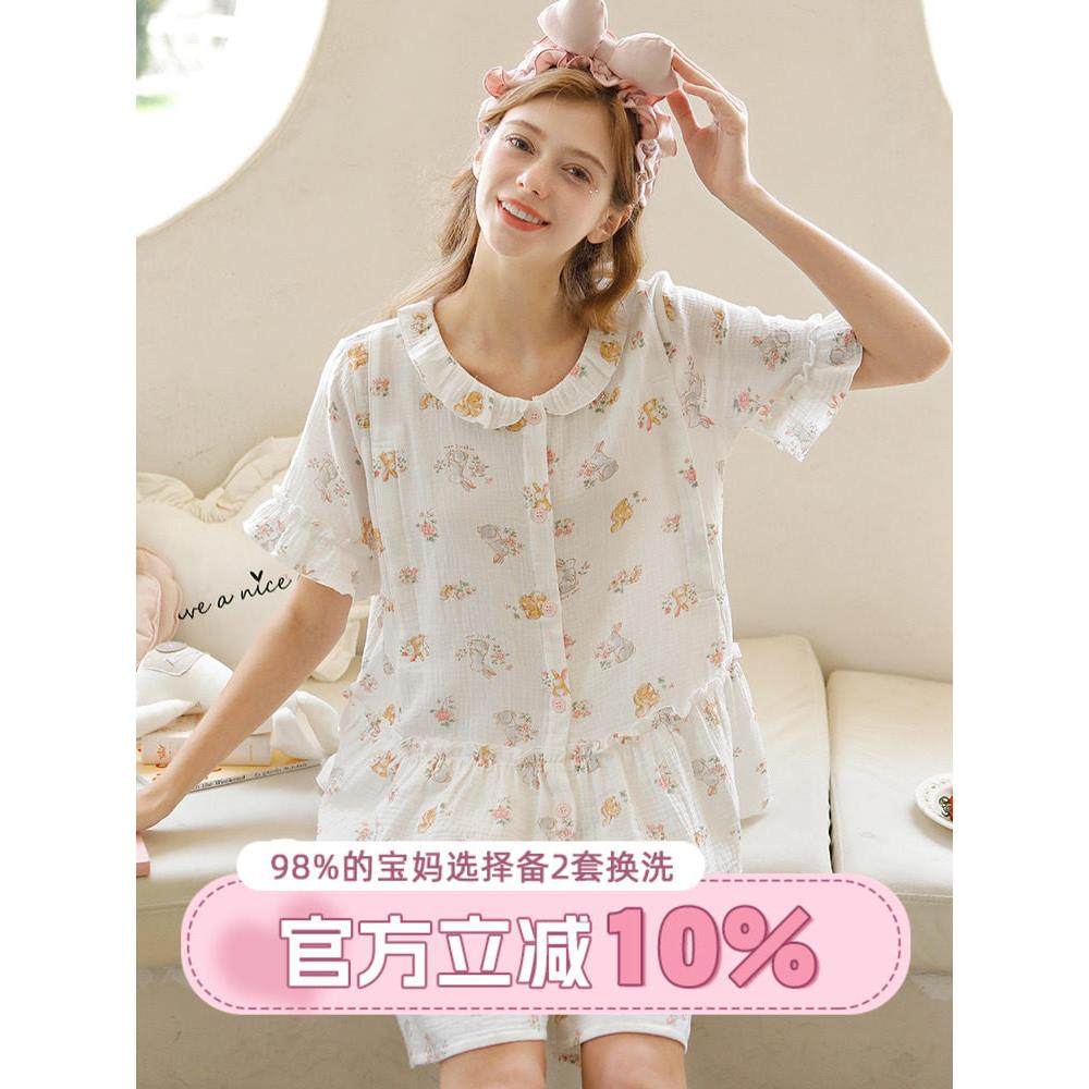 棉纱月子服夏薄款可外穿纯棉全棉吸汗孕妇哺乳睡衣纯棉a类母婴级