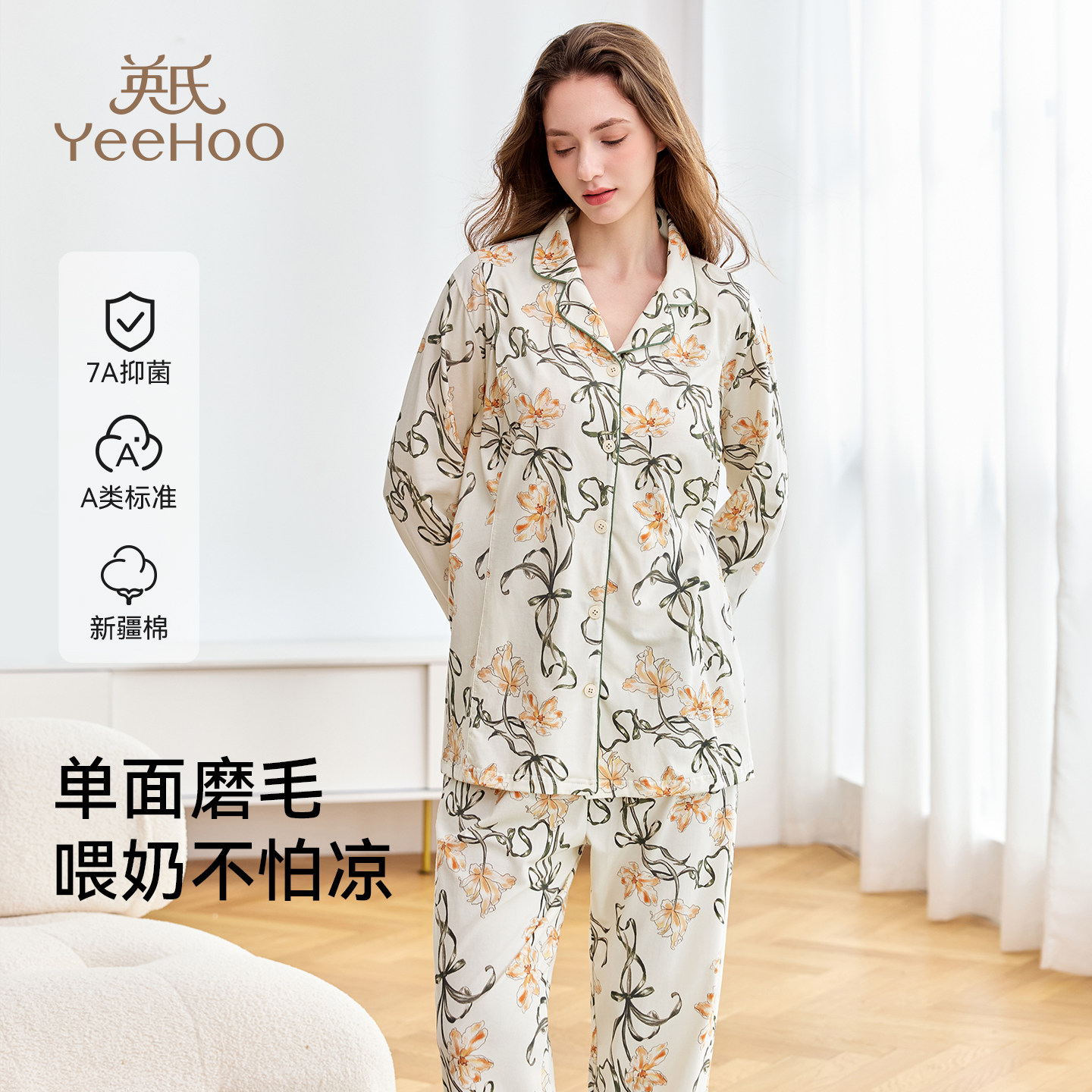 英氏孕妇哺乳睡衣纯棉秋冬新款A类月子服孕期产后喂奶家居服套装