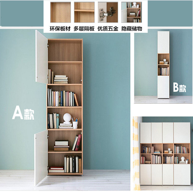 简易带门书柜书架省空间自由组合经济型家用阳台置物木柜定制定做
