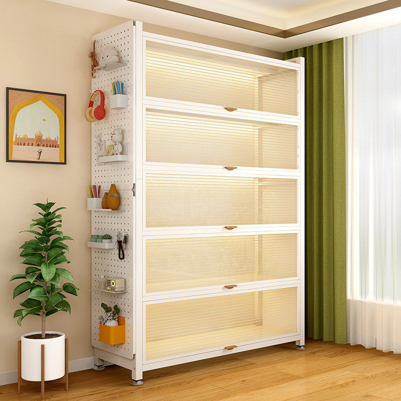 钢制家用带门书柜书架防尘储物柜落地多层展示收纳柜置物柜餐边柜