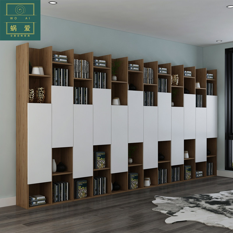 北欧带门书柜书架组合卧室阳台大容量简约现代书橱储物柜支持定制