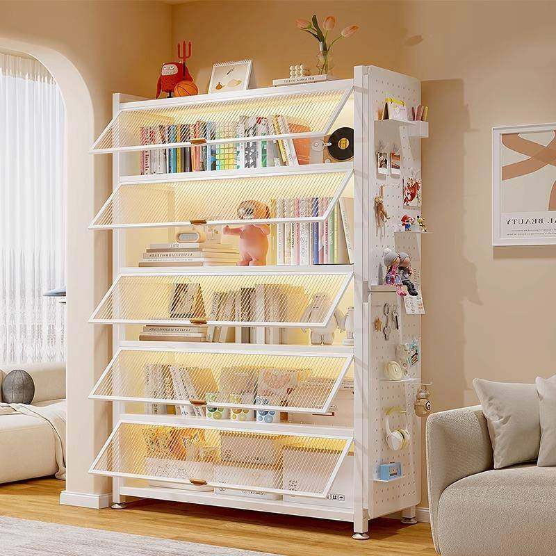 钢制书架带门儿童书柜防尘储物柜落地家用客厅展示柜铁艺置物架子