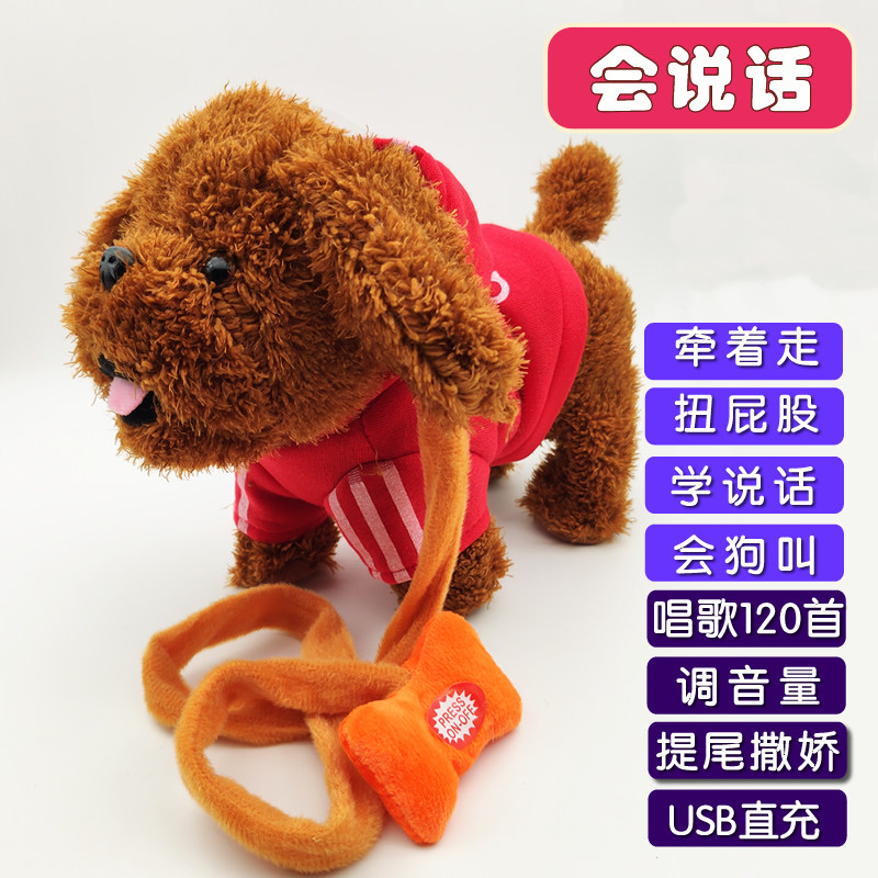 儿童电动毛绒玩具狗狗会唱歌会说话的机器狗仿真泰迪牵绳走路小狗