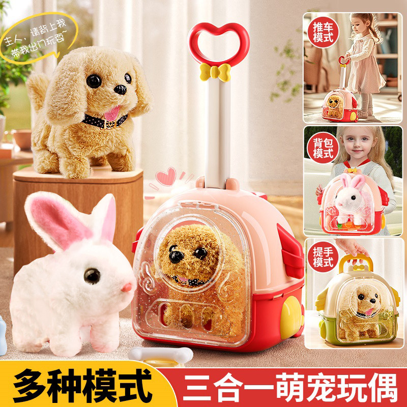 潮玩萌宠兔子毛绒玩具儿童电动仿真狗狗小兔子宠物车小房子宠物屋