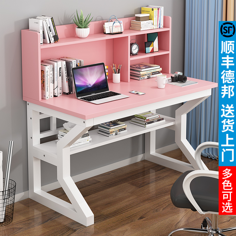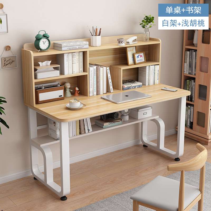 电脑桌台式家用卧室书桌带书架组合学生写字台简易学习桌书房桌子