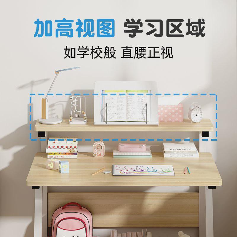 纯实木升降书桌带书架组合式卧室儿童学习桌小户型中小学生写字桌