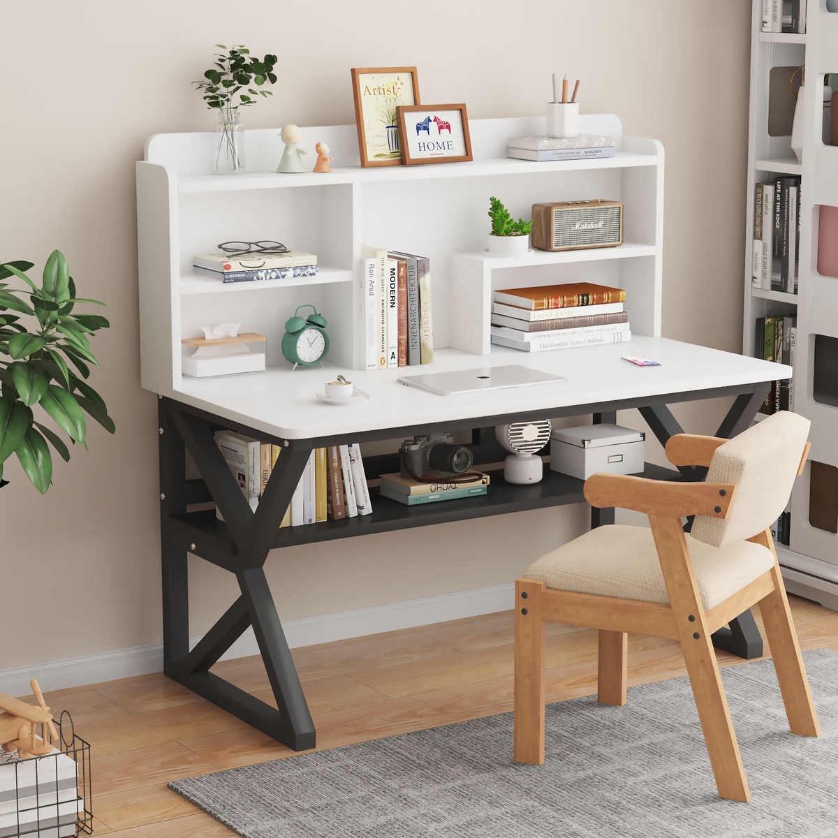 现代简约书桌带书架组合学生学习者写字桌家用电脑办公台式写字台