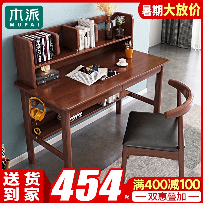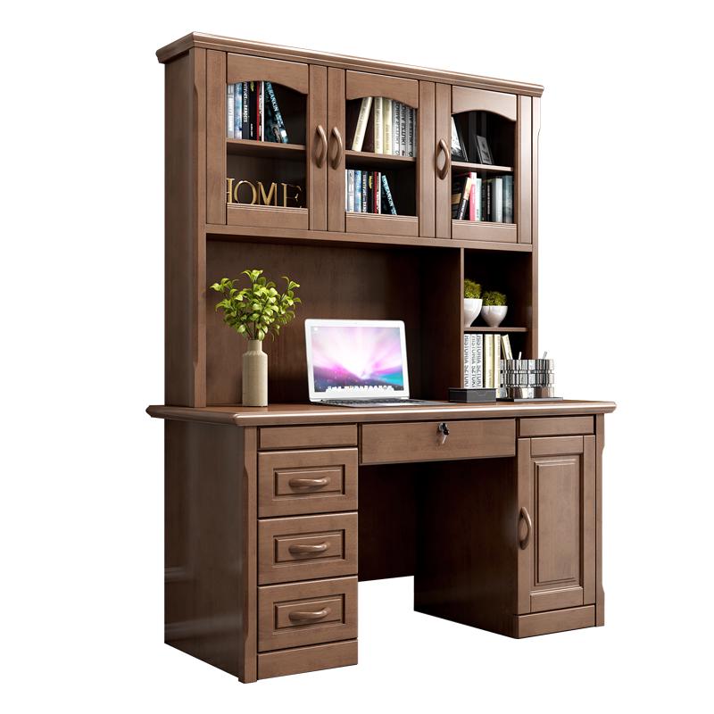 全实木书桌带书架组合简约家用学生学习写字桌卧室办公台式电脑桌