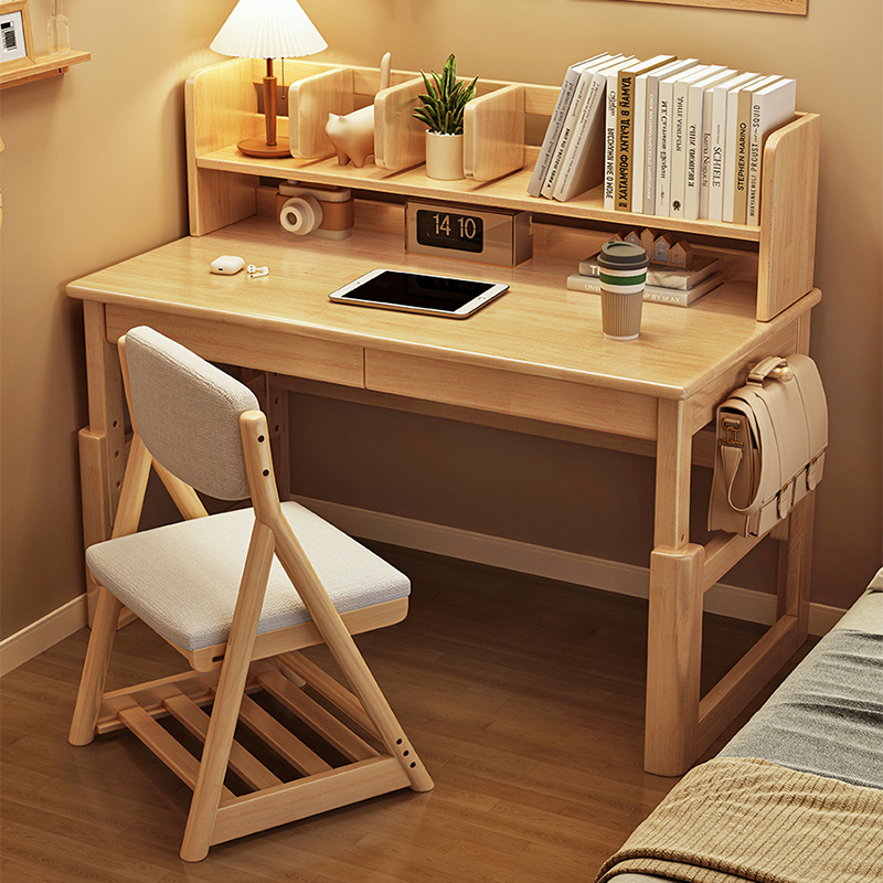 全实木书桌带书架组合中小学生家用写字课桌椅卧室儿童升降学习桌
