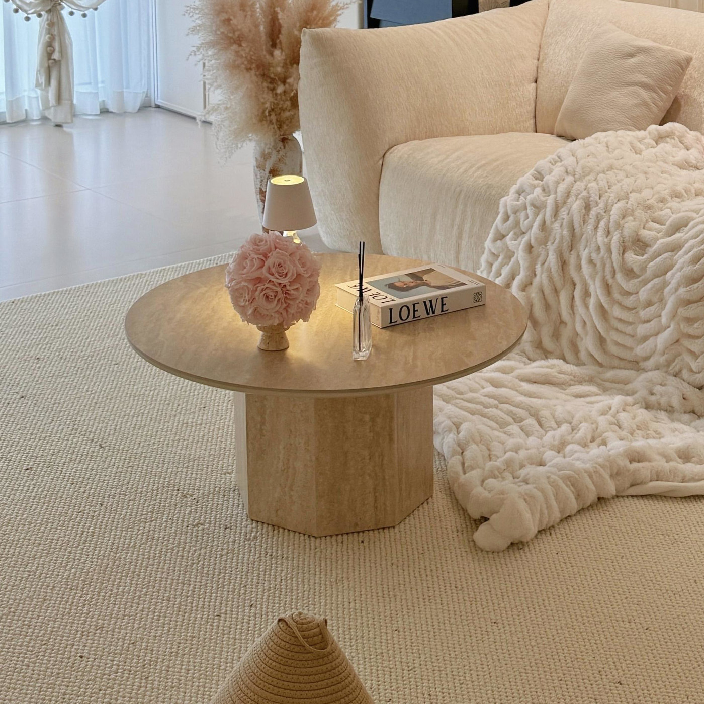 奶油风洞石茶几别墅家用高级感客厅侘寂风桌子法式复古小户型圆几