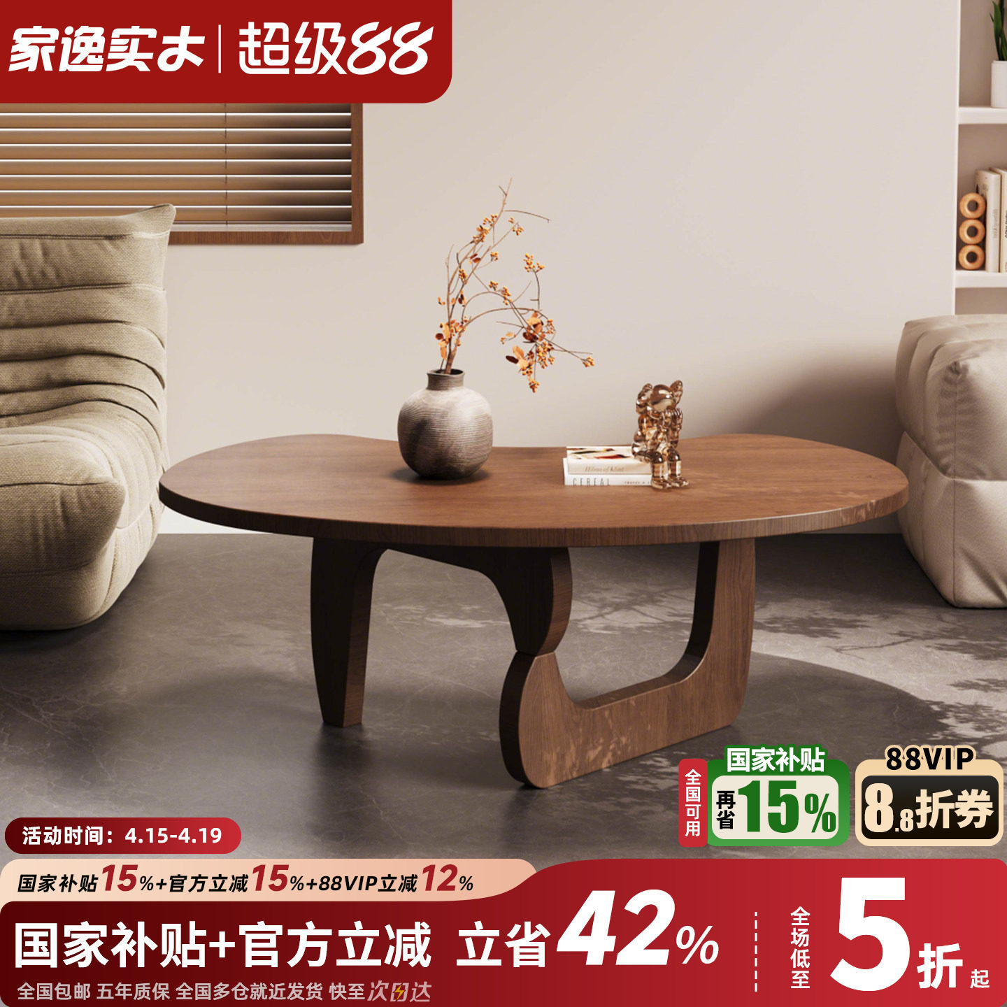 - 胡桃木茶几