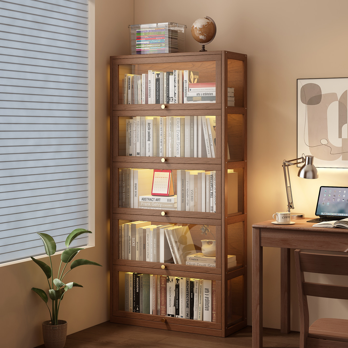 中古风实木书柜家用带门书柜储物柜一体收纳柜靠墙多层置物展示柜