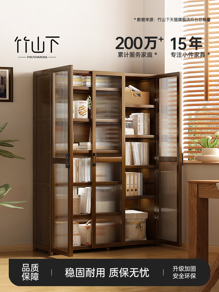 简易书架落地简约现代家用客厅带锁防尘储物柜办公室靠墙带门书柜