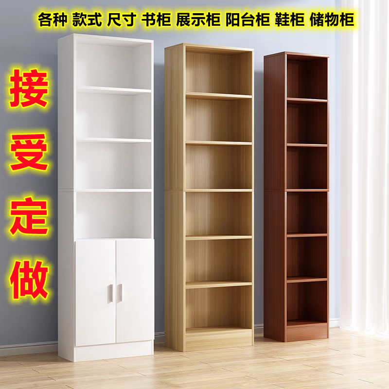 简易带门书柜书架省空间自由组合经济型家用阳台置物木柜定制定做