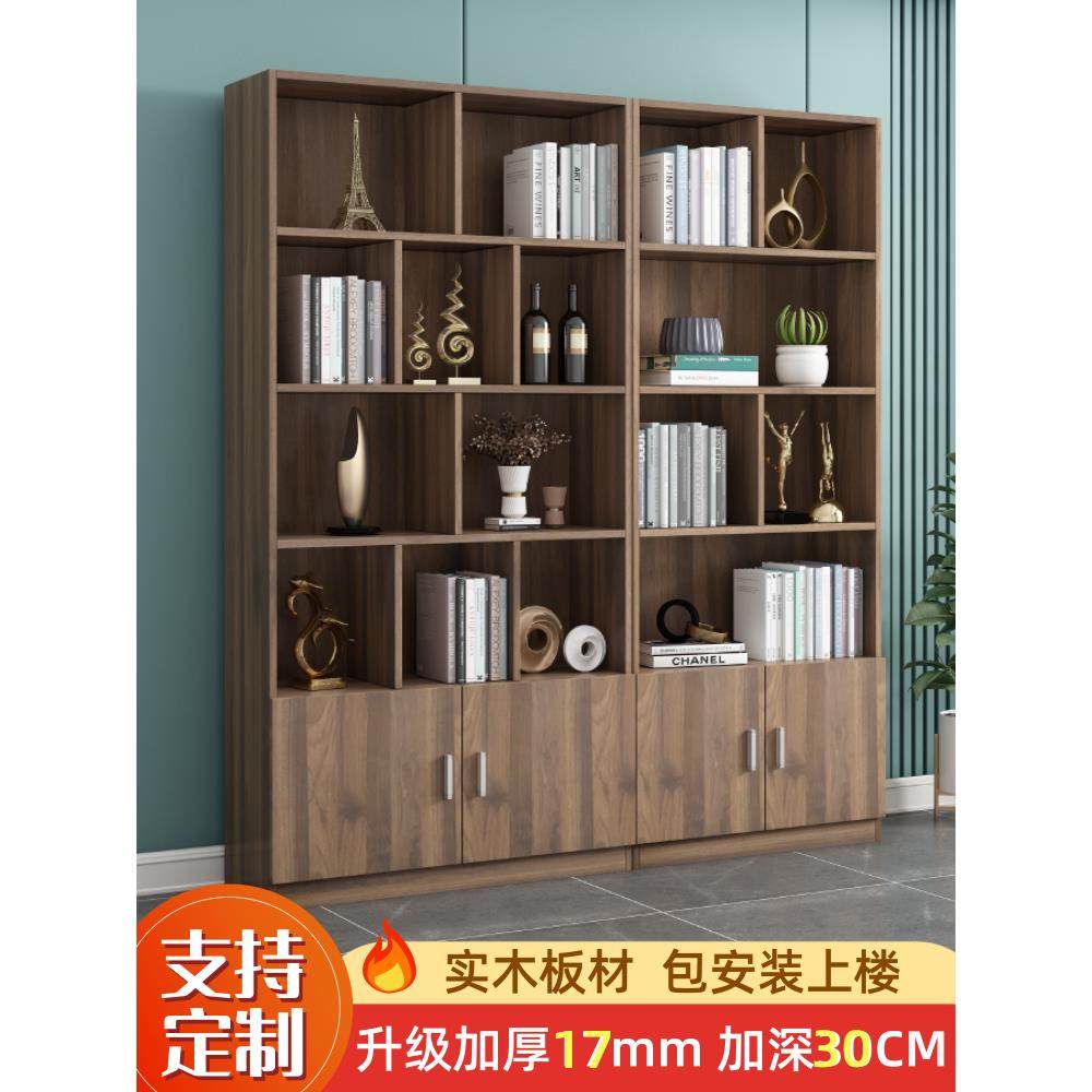 书架置物架落地书柜储物柜一体靠墙收纳家用实木带门防尘展示柜子