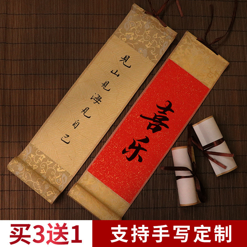 空白自写万年红春联对联红纸迷你小卷轴挂轴书法挂画蜡染洒金宣纸毛笔字作品专用字画国画挂件画轴文创diy手