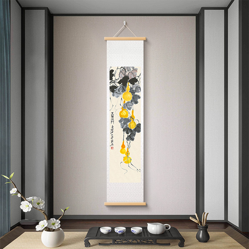 齐白石《五福迎门》客厅书房茶室装饰画挂画玄关水墨高清卷轴字画