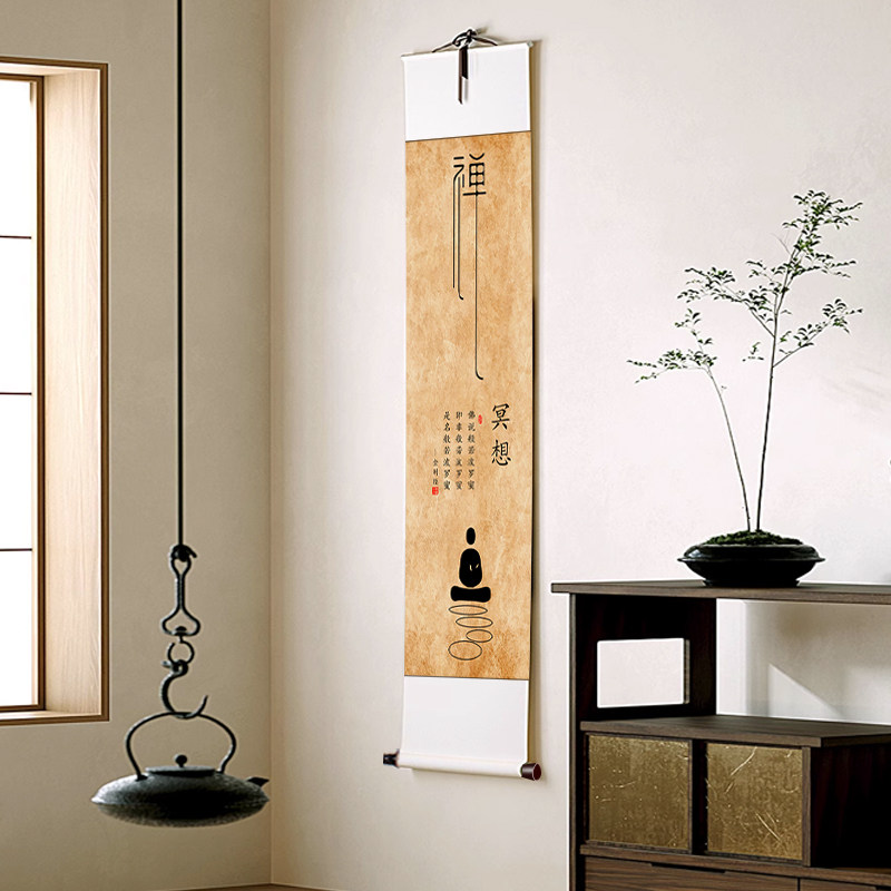 观自在手写真迹书法禅意中式玄关装饰画茶室书房客厅挂画卷轴字画