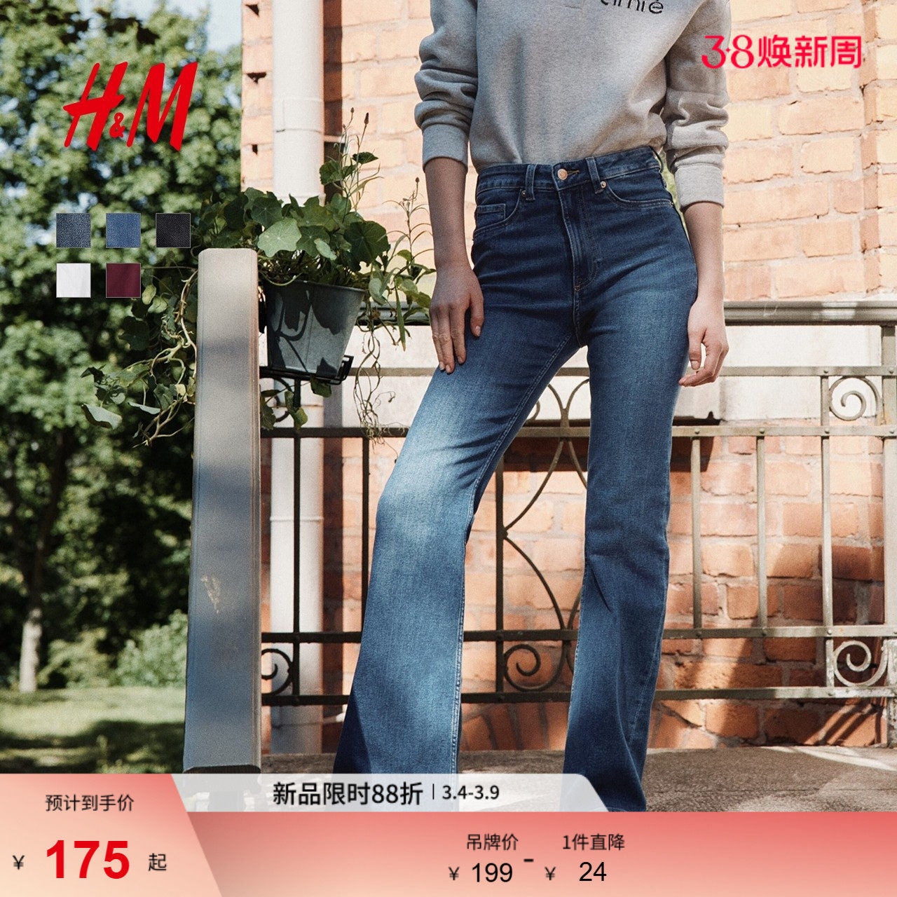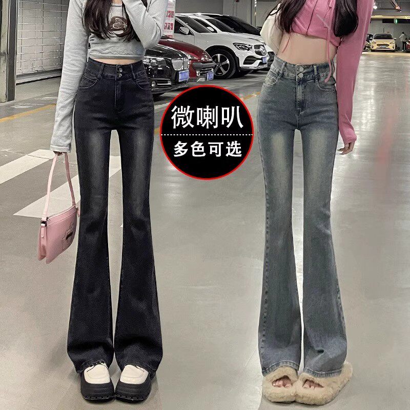 - 高腰牛仔裤喇叭裤