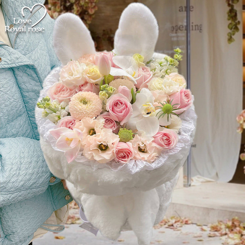 杭州鲜花速递同城兔兔玫瑰花小香风花束爱人女友闺蜜生日送花上门