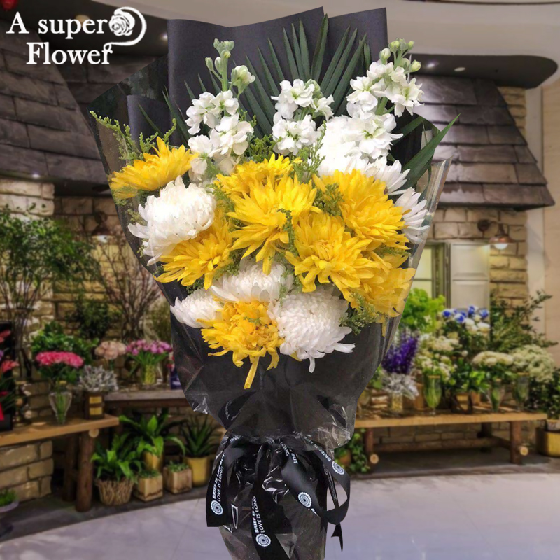 杭州同城鲜花店速递清明节扫墓上坟祭祀祭奠白菊黄菊花花束追悼会