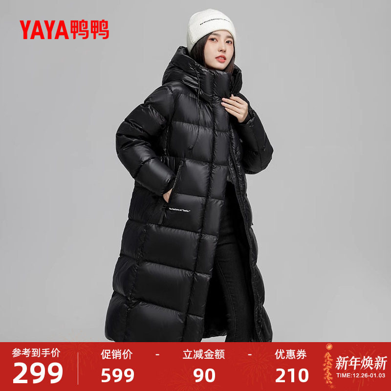 鸭鸭羽绒服女2025年冬季新款长款过膝连帽时尚休闲保暖加厚外套Y